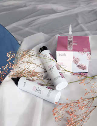 - Sebum Control Fluid: Pre-shampoo treatment with grape extract, ginger root, and Boswellia Serrata, which regulates sebum and maintains a healthy scalp microbiota.